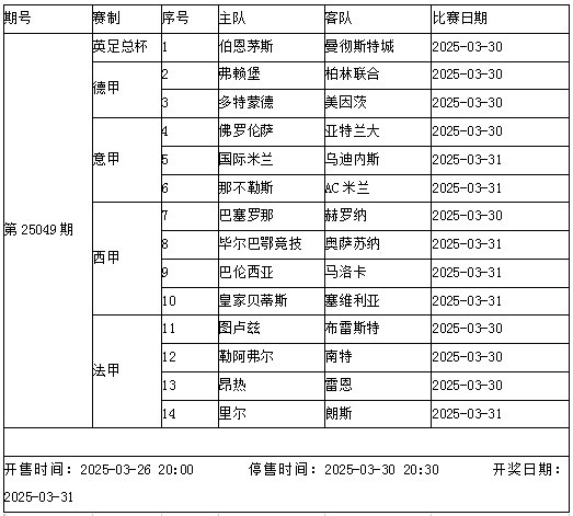 傳足勝負彩第25049期競猜賽事為英足總杯、德甲、意甲、西甲和法甲賽事,其中曼城將在英足總杯1/4決賽中對陣伯恩茅斯,意甲領頭羊國米主場面對烏迪內斯,AC米蘭和那不勒斯展開強強對話,西甲巴薩坐鎮(zhèn)主場迎戰(zhàn)赫羅納。