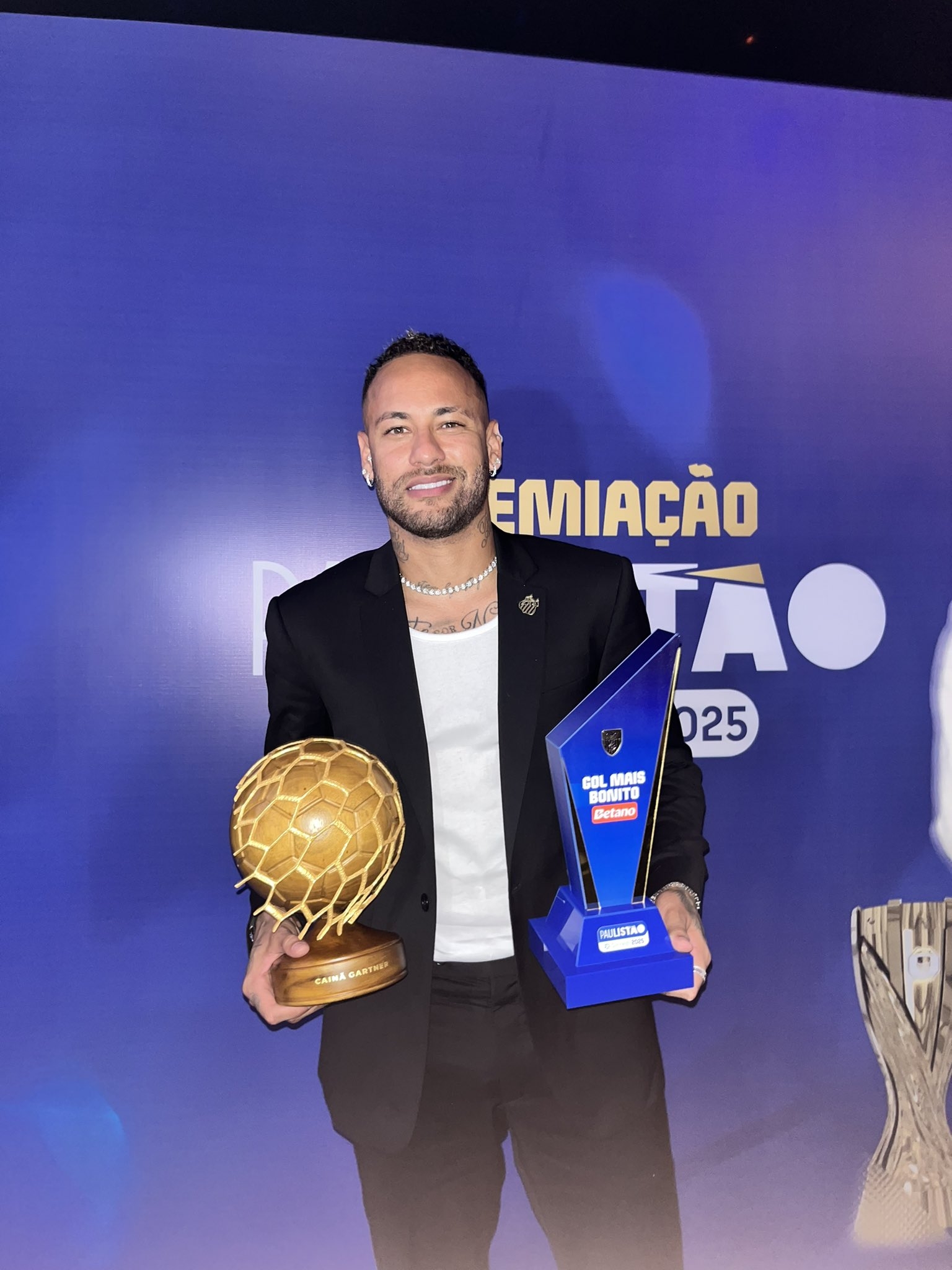 3月29日訊 內(nèi)馬爾日前出席圣保羅州聯(lián)賽頒獎(jiǎng)典禮,他對(duì)國(guó)際里梅拉的角球直接破門獲得了最佳進(jìn)球。