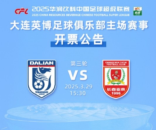 3月29日訊 今天下午大連英博主場(chǎng)對(duì)陣長(zhǎng)春亞泰的中超第三輪比賽,將于今天上午10點(diǎn)再次開票。