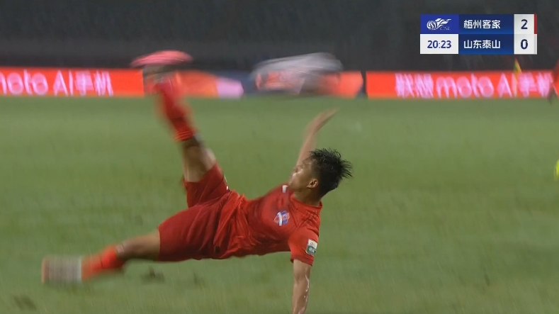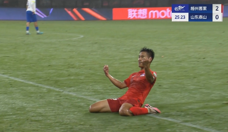 泰山20分鐘0-2落后梅州!楊超聲倒鉤破門&2場3球狂奔半場滑跪慶祝