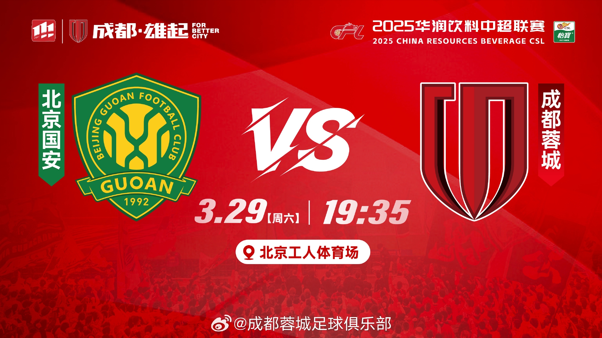 中超前兩輪,北京國(guó)安1勝1平積4分,排名中超積分榜第6;成都蓉城1勝1負(fù)積3分,排名中超積分榜第11。