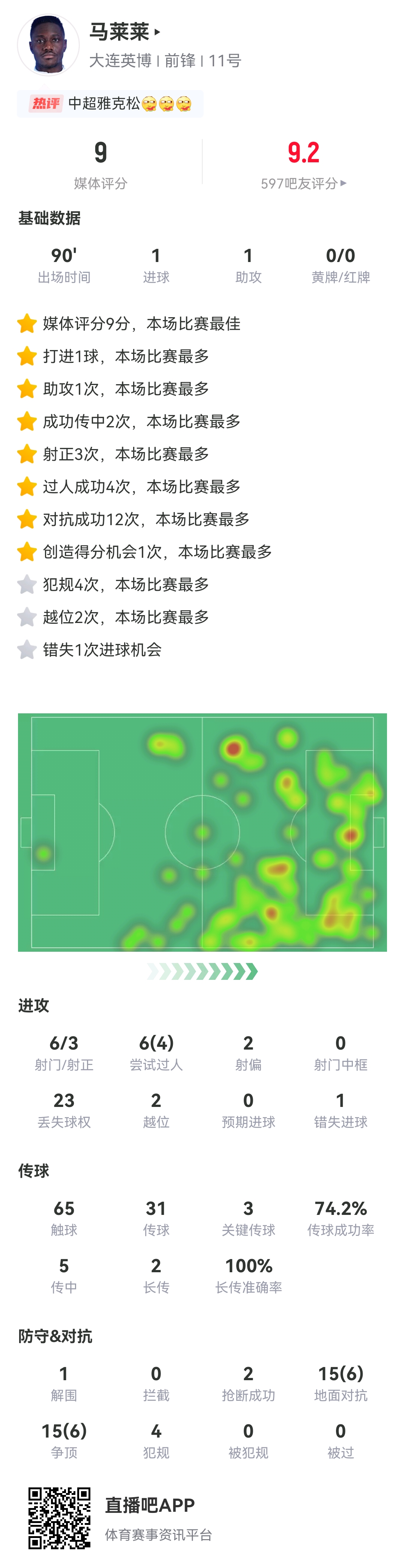 馬萊萊本場(chǎng)數(shù)據(jù)↓