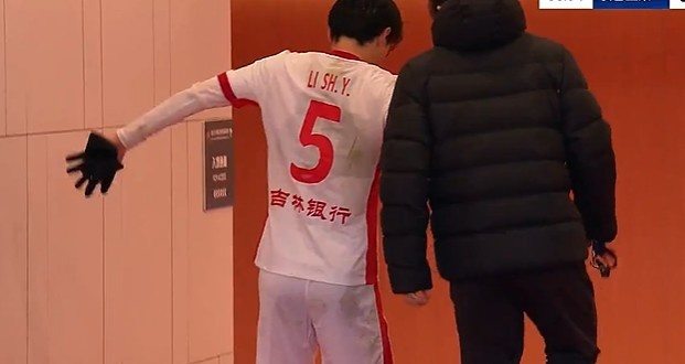 第38分鐘,譚龍拼搶中受傷倒地被擔(dān)架抬出場(chǎng)外,同時(shí)李申圓受傷堅(jiān)持不住回更衣室。↓