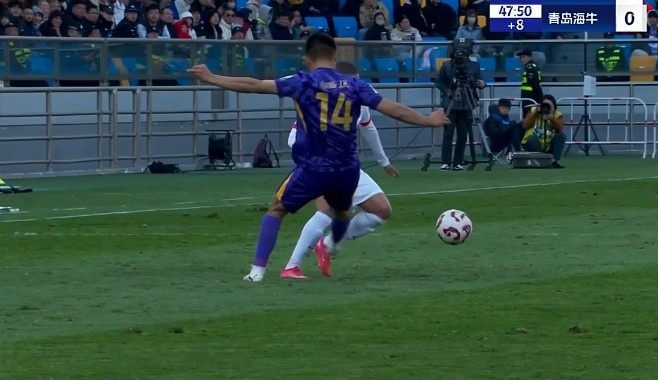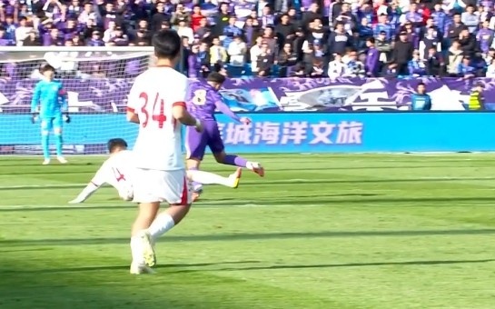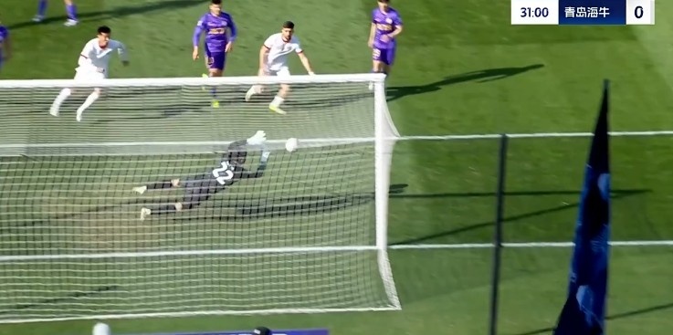 第31分鐘,青島海牛禁區(qū)里一次頭球攻門(mén)被門(mén)將飛身?yè)涑龅拙€(xiàn)?!?/p>