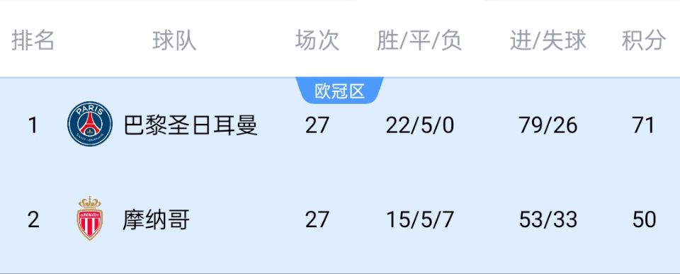 積分榜上,巴黎已經(jīng)領(lǐng)先摩納哥21分,幾乎已經(jīng)把聯(lián)賽冠軍放進(jìn)囊中。這也意味著巴黎之后可全力沖刺歐冠,不必為聯(lián)賽過(guò)多分心。