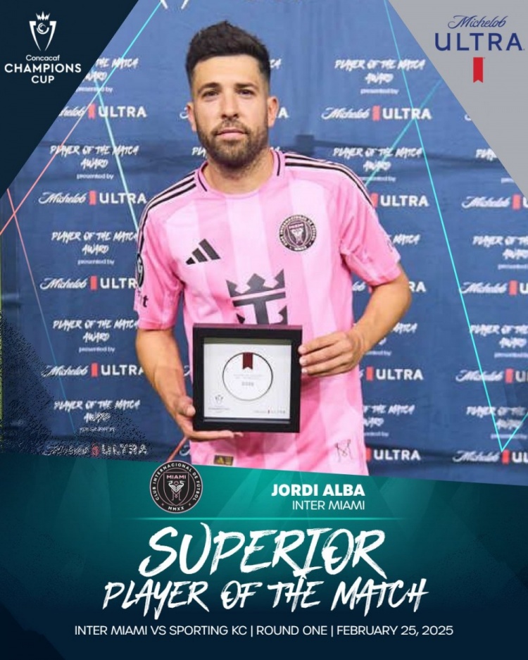 2月26日訊 中北美聯(lián)冠軍杯,邁阿密國(guó)際3-1堪薩斯城。賽后,本場(chǎng)比賽送出1次助攻的阿爾巴當(dāng)選全場(chǎng)最佳球員。