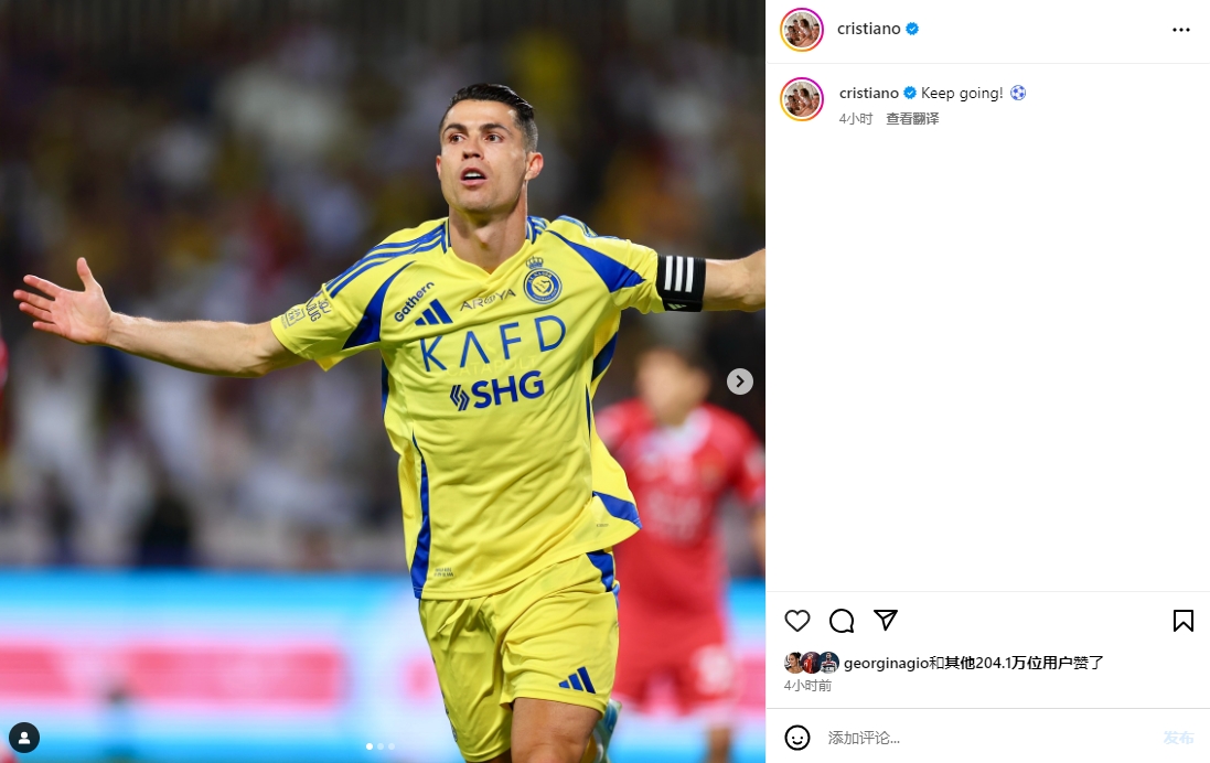 榮膺最佳球員!C羅社媒慶祝球隊勝利:繼續(xù)努力