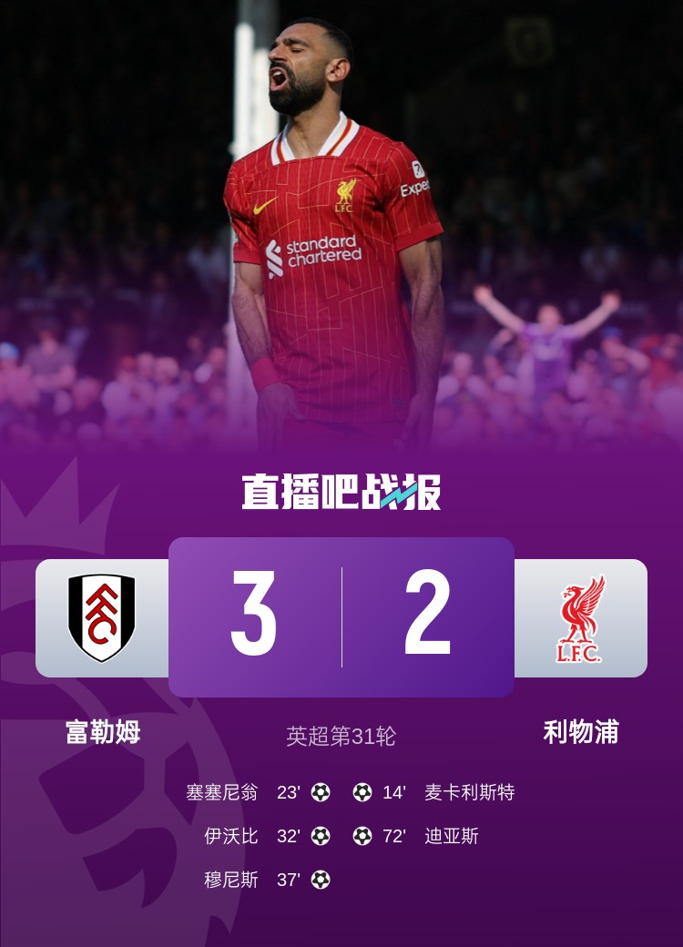 利物浦本輪3-2不敵富勒姆,利物浦后防集體夢(mèng)游,球隊(duì)也吃到了英超賽季第二敗。