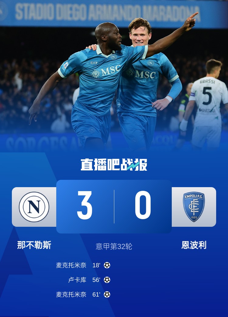 那不勒斯本輪3-0擊敗恩波利,盧卡庫(kù)和麥克托米奈聯(lián)手制造一場(chǎng)大勝!