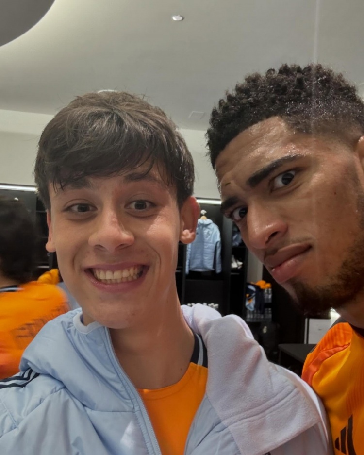 卡馬文加曬出自己與維尼修斯的合照并寫道:“和隊(duì)長(zhǎng)維尼修斯(后面還有莫德里奇、巴斯克斯、塞巴略斯和巴爾韋德)以及攝影師的照片????”