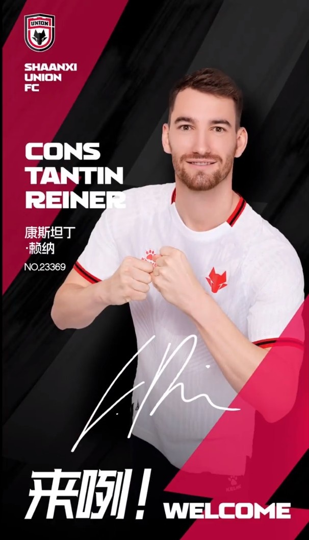 經(jīng)與球員本人友好協(xié)商并達(dá)成一致,球員康斯坦丁·賴納(Constantin Reiner)會(huì)員號(hào):23369,正式加盟陜西聯(lián)合足球俱樂部!