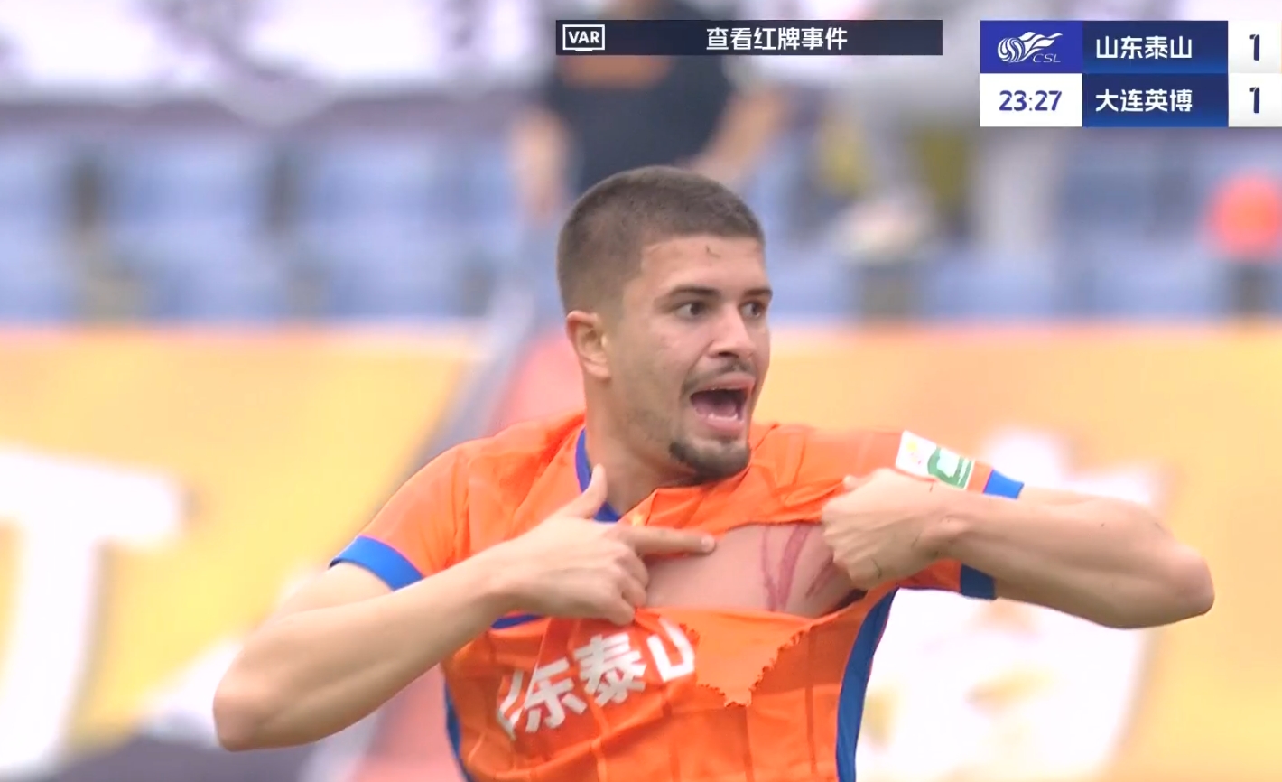大連少打一人!卡蘭加蹬踏直紅,卡扎爾球衣被蹬爛+胸部三道血痕