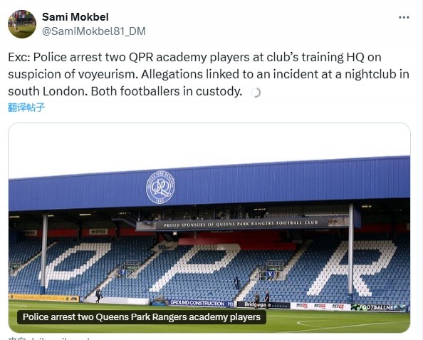 女王公園巡游者俱樂部向《郵報》發(fā)表聲明稱:“女王公園巡游者俱樂部了解到一起涉及兩名學(xué)院球員的事件。這兩名球員正在協(xié)助警方進(jìn)行調(diào)查。由于這是一項正在進(jìn)行的調(diào)查,俱樂部目前不會發(fā)表任何進(jìn)一步的評論?!?/p>