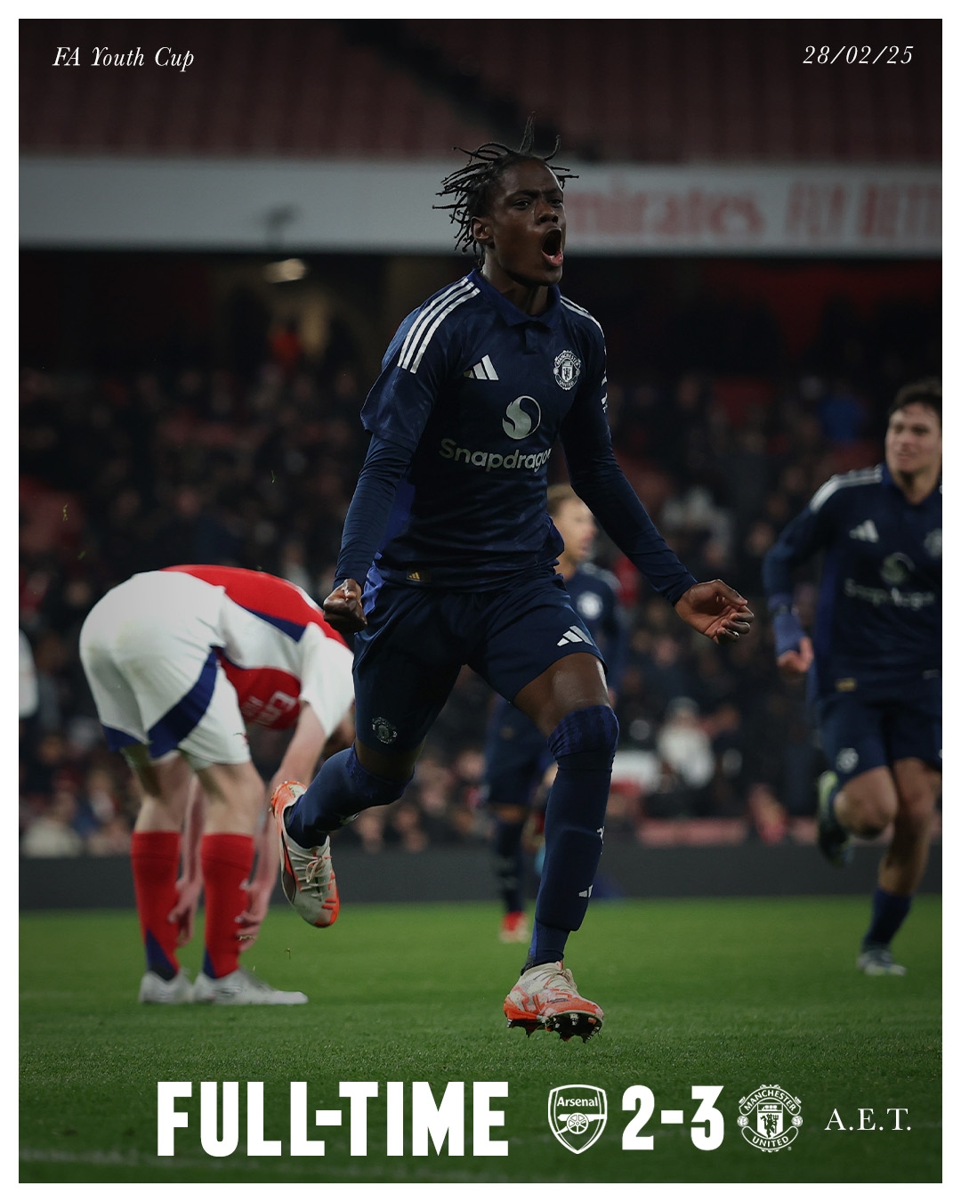 3月1日訊 北京時間3月1日3:00,青年足總杯1/4決賽,曼聯(lián)U18對陣阿森納U18,比賽在酋長球場打響!上半場,杰克-弗萊徹世界波破門;科普萊單刀幫助阿森納扳平。下半場,道曼點射破門;卡馬森暴力重炮將比分扳成2-2!加時賽中,曼塔托包抄破門!尾聲階段阿森納隊長斯威特背后鏟人染紅!最終,U18曼聯(lián)3-2戰(zhàn)勝U18阿森納,晉級青年足總杯4強!