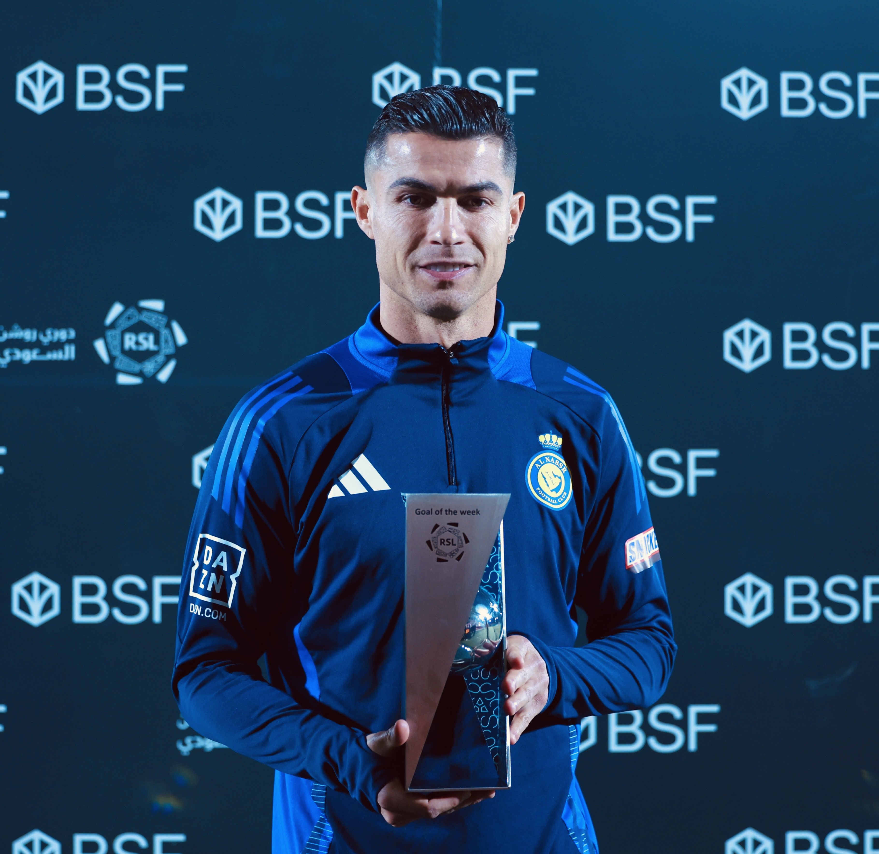 客戰(zhàn)歐魯巴赫賽前,C羅領(lǐng)取沙特聯(lián)第22輪最佳進球獎