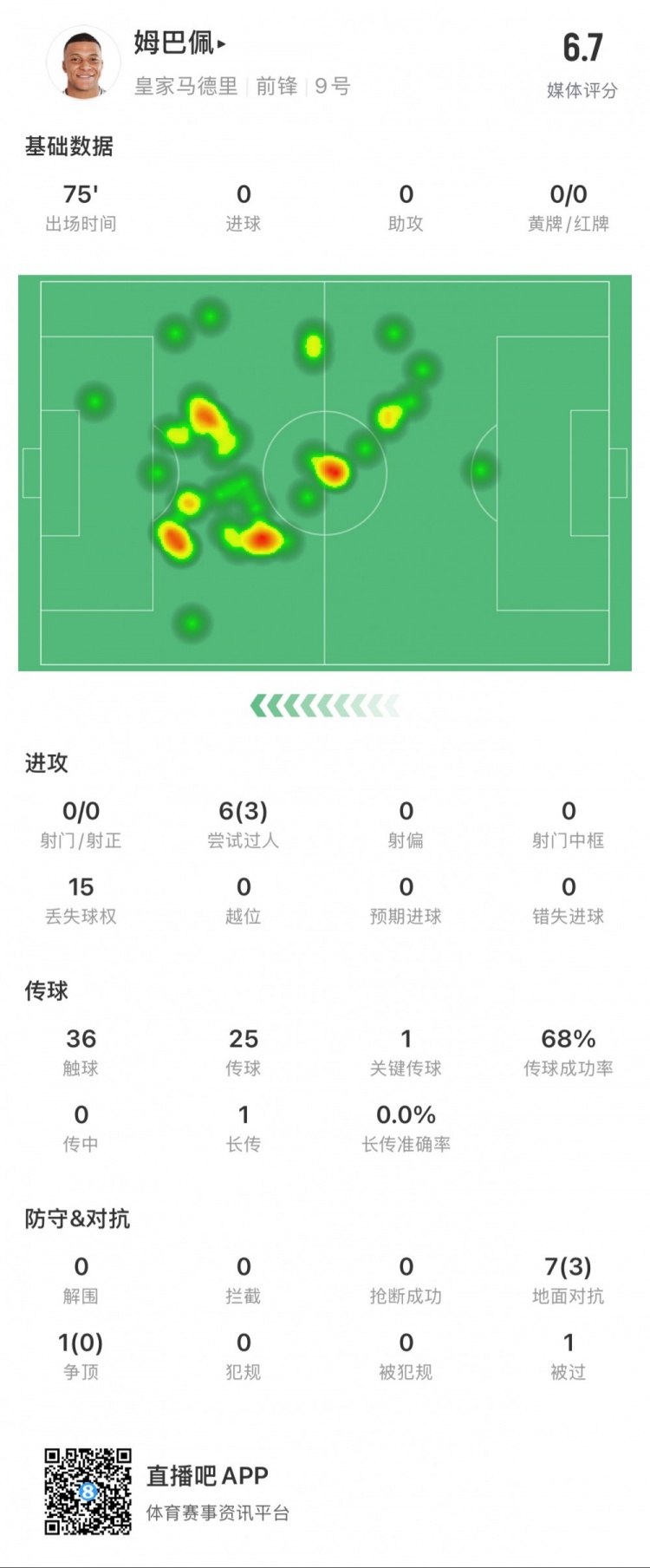 姆巴佩本場(chǎng)數(shù)據(jù):0射門(mén),3次成功過(guò)人,1次關(guān)鍵傳球