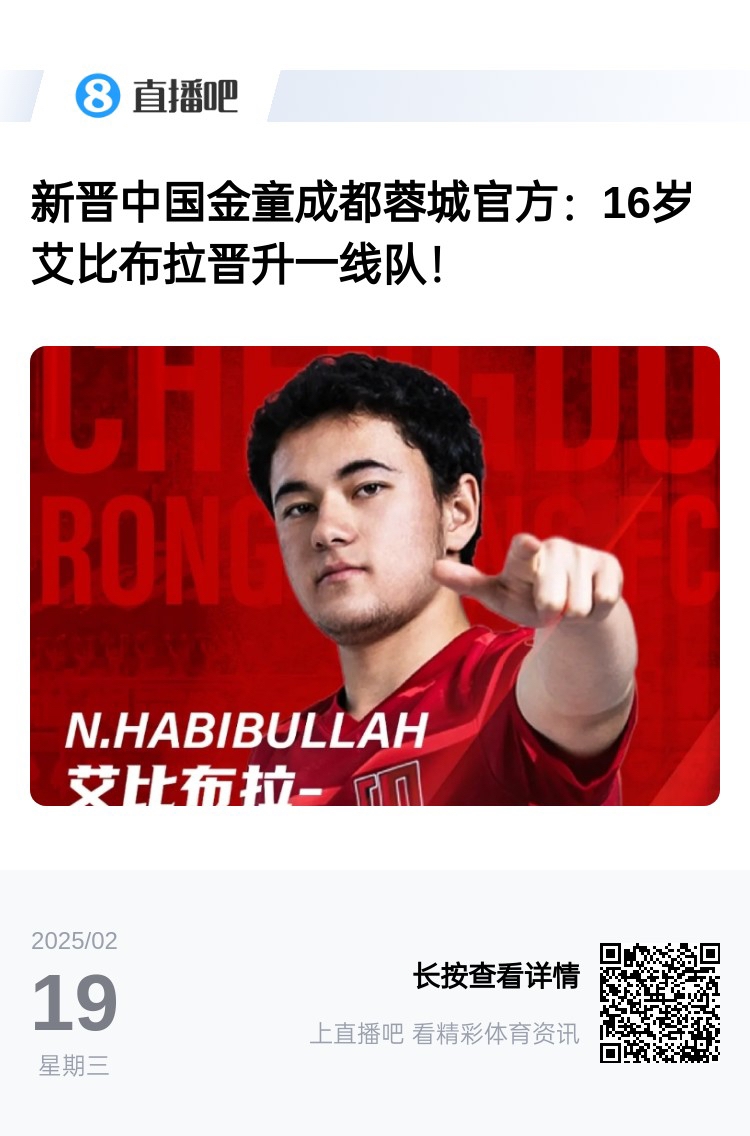 U17國足陣中,艾比布拉同樣被提拔至成都蓉城一線隊,今晚蓉城對陣津門虎,16歲的艾比布拉能否上演中超首秀?