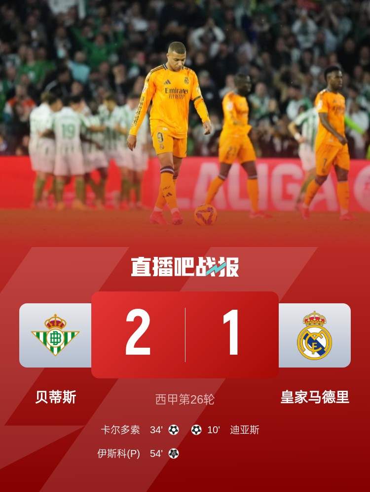 皇馬本輪1-2不敵貝蒂斯,白衣軍團(tuán)在聯(lián)賽輸?shù)絷P(guān)鍵戰(zhàn)役,近5輪僅1勝。
