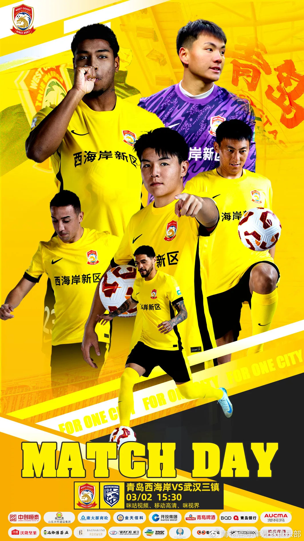 03月02日訊 15:30中超第二輪,青島西海岸對(duì)陣武漢三鎮(zhèn)。賽前雙方公布本場(chǎng)比賽首發(fā)。