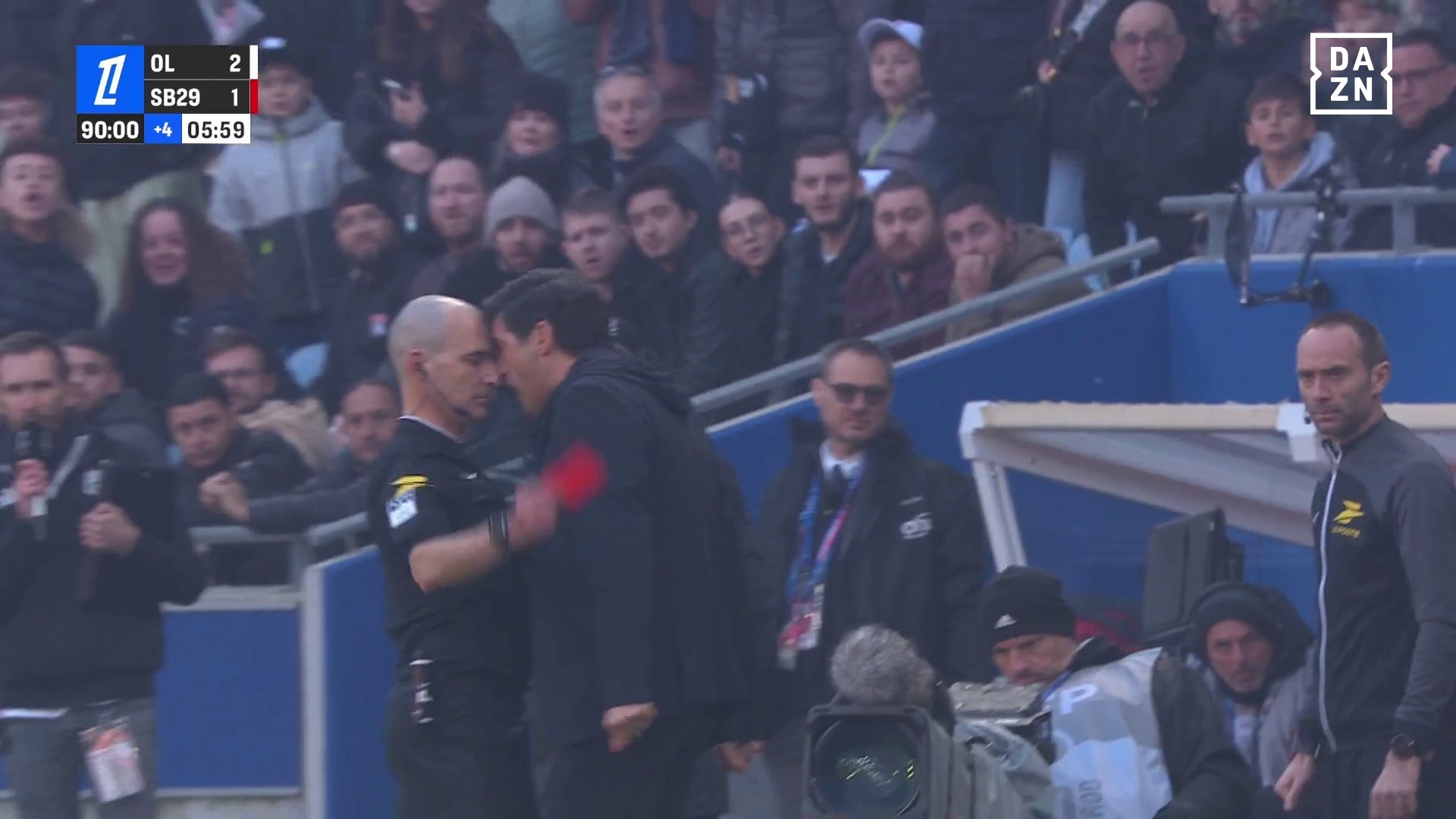 法甲第24輪,里昂2-1戰(zhàn)勝布雷斯特,比賽中里昂主教練豐塞卡被出示直紅罰下,他非常憤怒的與裁判頂牛,并且怒噴裁判。