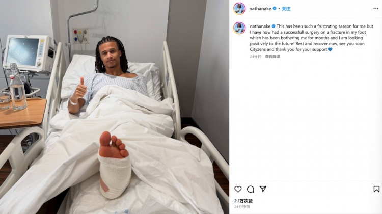 阿克表示:“這對(duì)我而言是一個(gè)令人沮喪的賽季,但現(xiàn)在我已經(jīng)成功接受了腳部骨折手術(shù)。這一傷病在過去幾個(gè)月令我倍感困擾,現(xiàn)在我對(duì)未來充滿信心!當(dāng)前仍需休養(yǎng)康復(fù),城民們,很快再見!感謝你們的支持。”
