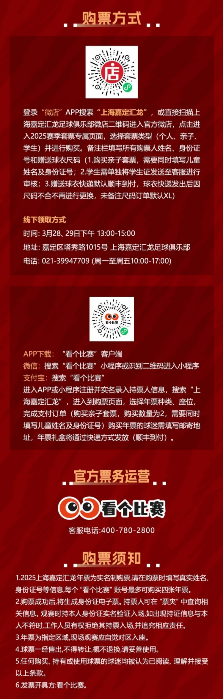 上海嘉定匯龍2025賽季會員套票銷售方案