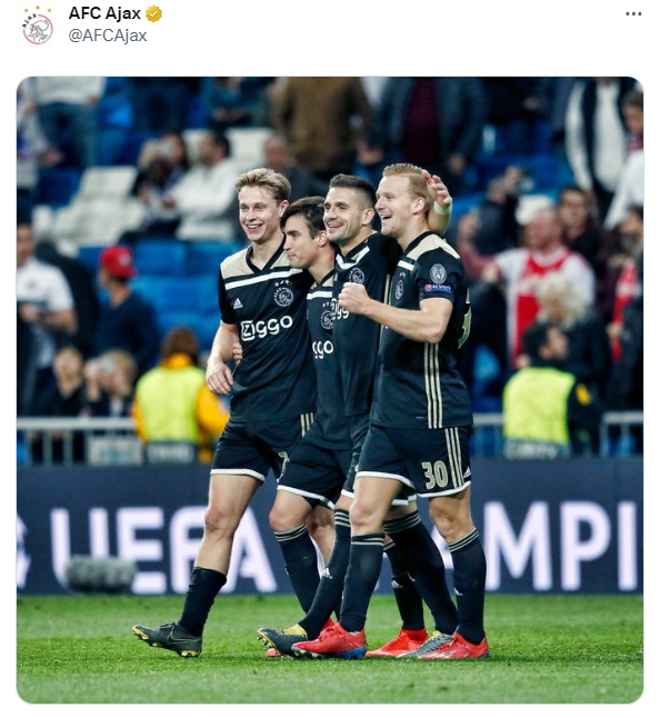 6年前的今天,歐冠1/8決賽次回合,皇馬主場1-4慘敗阿賈克斯,阿賈克斯青年軍淘汰皇馬殺入八強(qiáng)。阿賈克斯官推曬出多圖,重溫這場經(jīng)典戰(zhàn)役。