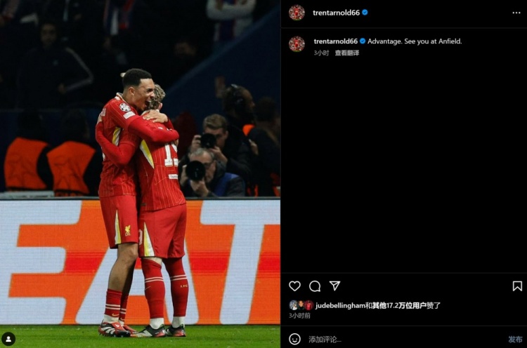 3月7日訊 歐冠1/8決賽首回合中,利物浦1-0絕殺巴黎。賽后,阿諾德更新社媒,慶祝球隊(duì)取得這場(chǎng)來(lái)之不易的勝利。