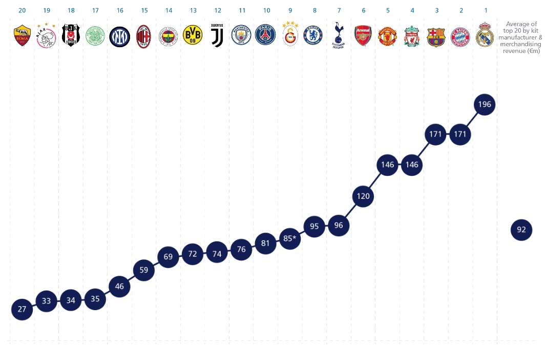 03月08日訊 根據(jù)歐足聯(lián)最新的財務報告顯示,皇馬去年以1.96億歐創(chuàng)下了球衣和商品銷售收入的新世界紀錄。